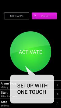 Once you activate the alarm, the theft alarm, you don’t need to worry anymore about your smartphone, because if any one touch or move your phone , the alarm will be triggered. Moreover , the thief can not deactivate the alarm or turn down the volume because everything is locked with PIN Code as app lock or phone lock. Consequently you can consider this app as Thief catcher too , if someone took your phone, the app will trigger the alarm and the thief cannot cancel it .