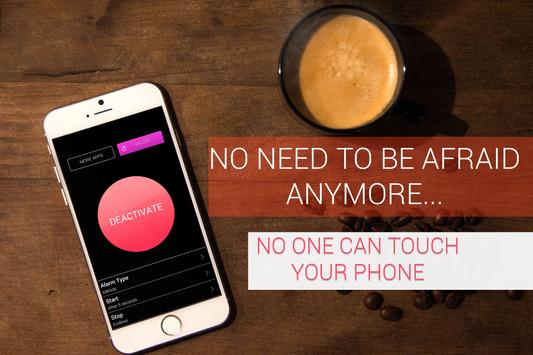 The dont touch my phone app or the anti theft alarm app will make your phone safe from curious people and burglars. this phone alarm app keeps people from messing with your smartphone with an alarm anytime someone tries to touch your cell phone or try to stole your device. In Summary , with this app means no touch ,no robbery , no thief can touch your phone.