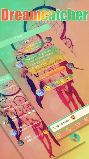 Whoever wanna a simple and funny Dreamcatcher keyboard theme, please try out this Dreamcatcher Emoji Keyboard Theme specially designed for Dreamcatcher lovers. Make your phone pop among your friends by grabbing this Dreamcatcher Theme.