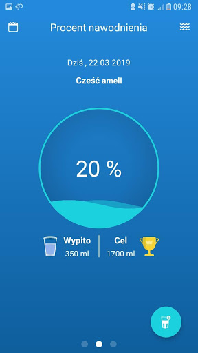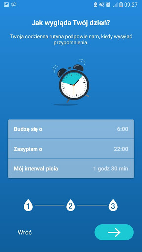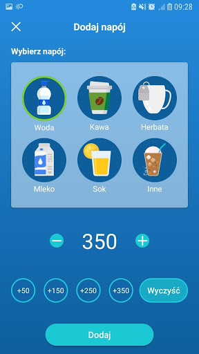 monitorować ile płynów przyjąłeś i ile brakuje ci do osiągnięcia dziennego celu,