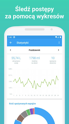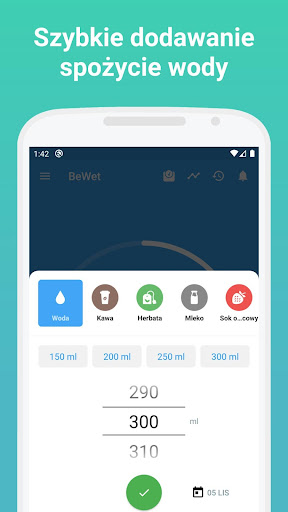 W zależności od pogody i aktywności fizycznej aplikacja dostosowuje ilość wody, którą należy wypić dziennie.