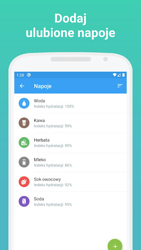 Herbata, kawa, sok itp. Dodaj swoje ulubione drinki i wskaźniki hydratacji, aby poprawnie obliczyć nasycenie wody.