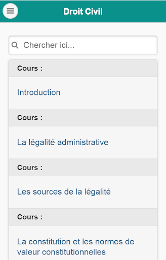 Aplikasi android ini mengandungi kursus berdasarkan undang-undang sivil.Ia boleh digunakan oleh murid tetapi juga oleh murid di kelas akhir.