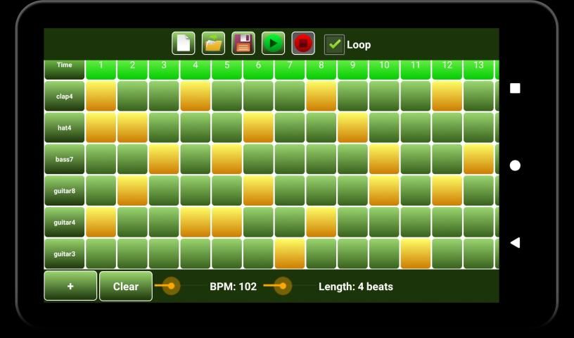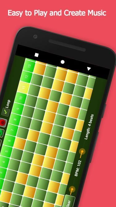 If you want to create music with great quality and in a fun way, Make your music with drums and simple Drum Pad Beat Maker Pro. Very simple to use, only click on buttons on the sequencer to set when the drum is going to hit and get your music. Tap on sequencer buttons to make your beat then click play button. If you wanna modify on the go, modify click on loop before Play.