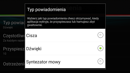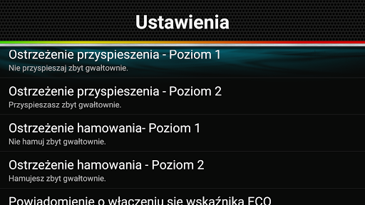 Nasza aplikacja będzie na bieżąco informować o wydajności jazdy w oparciu o współczynniki hamowania i przyspieszenia.