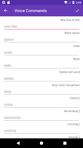 - Configurable voice commands for creating and editing your notes (For instance there is a command for adding a blank space or for adding a new line of text).