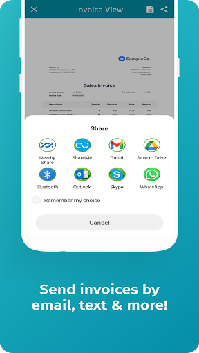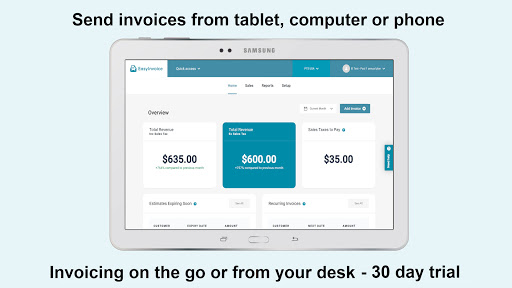 Szybko i łatwo tworzyć & amp; Wysyłaj profesjonalne faktury, szacunki, cytaty, wpływy i oświadczenia do klientów. Wyślij je na telefon z biura klientów lub z domu z aplikacją internetową na tablecie lub komputerach stacjonarnych.