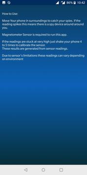 The app use magnetic field sensor. that is why the readings can be distorted by any metal or electronic device. When you are using our detector just try to keep any distortion away. This spy bug scanner is very easy to scan the device or bug in your surroundings.