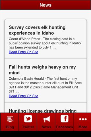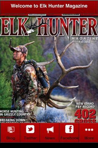 Elk hunting information gear reviews, Elk Hunter Magazine blog Twitter and facebook as well as elk hunting news.At Elk Hunter Magazine, we want to keep our readers informed on uptodate elk hunting news. We also want to offer the latest and great elk hunting tactics, elk hunting gear, and of course, great editorials from our staff. Elk Hunter Magazine Editors Include:Ryan HatfieldRandy UlmerChris DenhamNate SimmonsGeorge BettasTony BynumMike DuplanDan StatonKristy TitusJay ScottPaul MedelElk Hunter Magazine App FeaturesElk Hunter Magazine Facebook feed Elk Hunter Magazine Twitter Feedquot;Feed the Obsessionquot; the Elk Hunter Magazine BlogElk hunting news updates Contact the guys at Elk Hunter Magazine