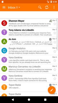 With Email for hotmail - Outlook App you will be able to connect to any mail using your android device. Bring your mail with you anywhere you go. The app support most email providers and automatically set up you account, you will only need to type emails and password, the app will take care of everything. Between most popular emails you can easily connect to Hotmail, Ouloook, Gmail, Yahoo, Aol, Yandex and others.