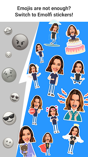 Emolfi Klawiatura otrzyma dziesiątki Selfie-opartych naklejki emocjonalne do wykorzystania w WhatsApp, Messenger lub każdej innej aplikacji chat i sieci społecznościowej. Oprócz tego, naklejki są automatycznie łączone z tekstem, który wpisujesz, obracając proste rozmowy w pełni wizualizowane wiadomości.