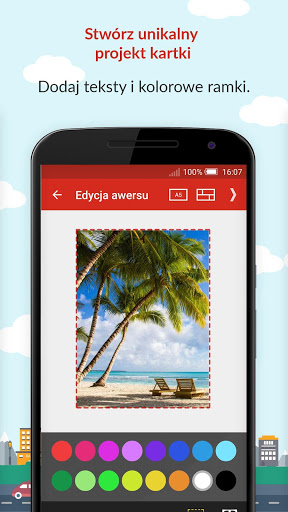 • Wyślij tradycyjną, drukowaną kartkę pocztową prosto z ekranu swojego urządzenia.