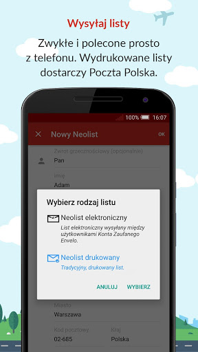Dzięki aplikacji Envelo wyślesz kartki pocztowe prosto z ekranu smartfona i tabletu. Kartki trafią do odbiorcy jako tradycyjne drukowane pocztówki umieszczone w kopercie. Moźe to być laurka dla dziadków albo pamiątka z wakacji, kartki urodzinowe, imieninowe czy Wielkanoc.