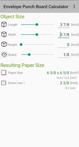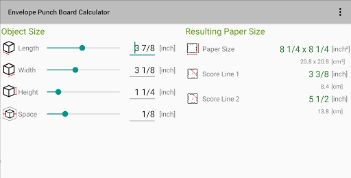 Dzięki tej aplikacji wymiar liniowe papieru i wyniku do płytki punchowej koperty UP / WE R Memory steepers można łatwo określić.