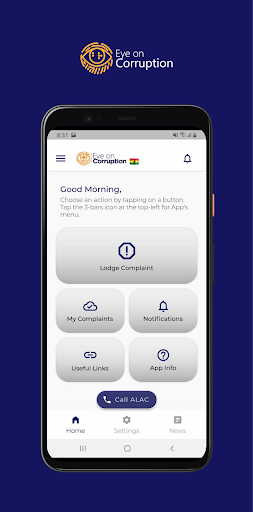 Eye on Corruption App is a mobile application which allows people to report/submit a corruption related complaint to the Advocacy and Legal Advice Centre (ALAC). Eye on Corruption App is geared towards seeking redress to corruption related cases for victims of corruption and gathering the necessary evidence for public policy reforms.