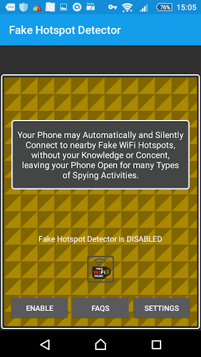 Ta aplikacja zostanie wykryta - i ostrzega Cię - gdy telefon łączy się z fałszywym hotspotem typu 2 i 3 powyżej, umożliwiając wyłączenie połączenia