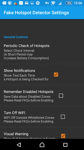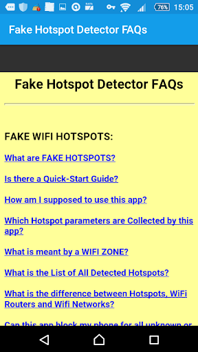Ten "Fake Hotspot Detector" korzysta z geolokalizacji do kojarzenia każdego wykryte hotspot wifi (np. Sieć) z określoną strefą WiFi