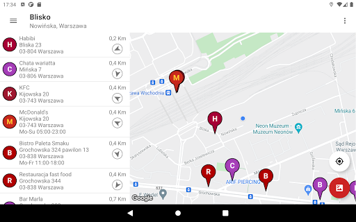 Znajduj restauracje fast food w pobliżu i na całym świecie. Aplikacja wyświetla elementy na liście i na mapie i umożliwia łatwe przechodzenie do jednego elementu.