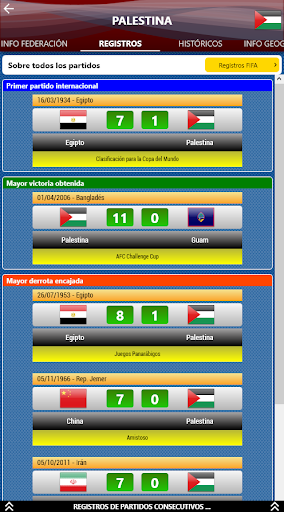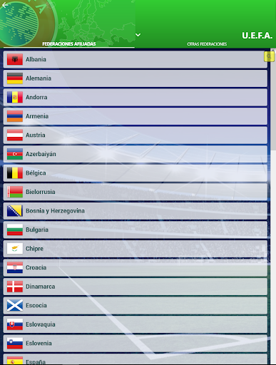 Kompletne i szczegółowe informacje o federacjach piłkarskich na całym świecie (około 350), zarówno FIFA, jak i FIFA, klasyfikowany przez konfederacje.W tym dane administracyjne, informacje graficzne Federacji, flagi, mundurów, historycznych turniejów lokalnych i międzynarodowych turniejów klubowych, a także tytuły narodowej drużyny.Statystyki i konfrontacje zespołu narodowego z 1872 r. Do tej pory, dane geograficzne i wiele innych.