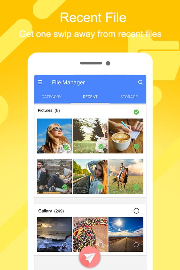 Categories: Files are organized into categories by their formats. From there, you can access to frequently used apps quickly.