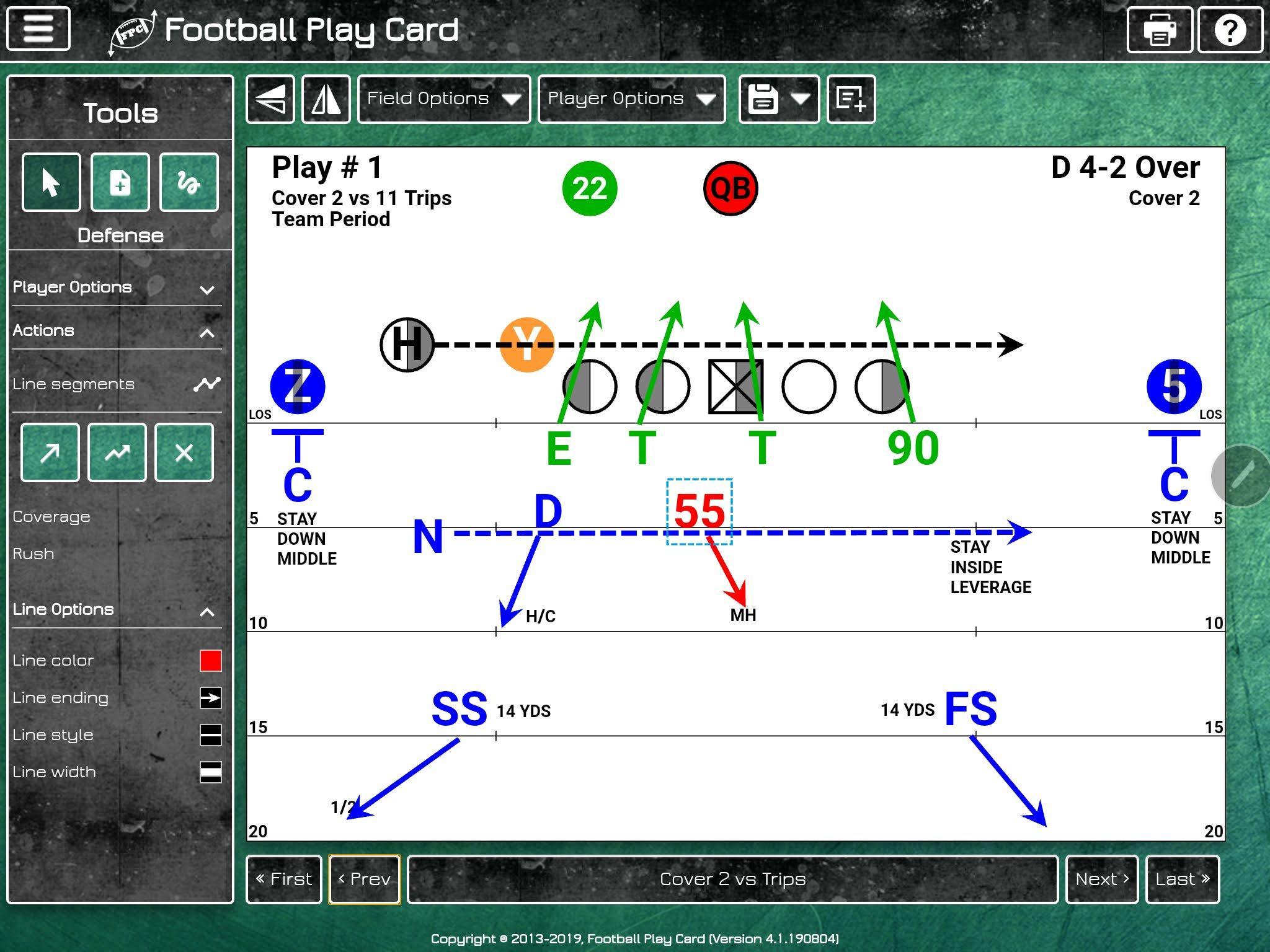 - Use preset offensive formations, defensive fronts, and defensive coverages to create play card