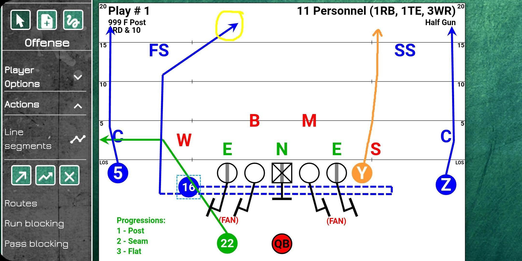 -- Ability to update/set line attributes for each line segment (dashed line for pre-snap motion and solid line for route)
