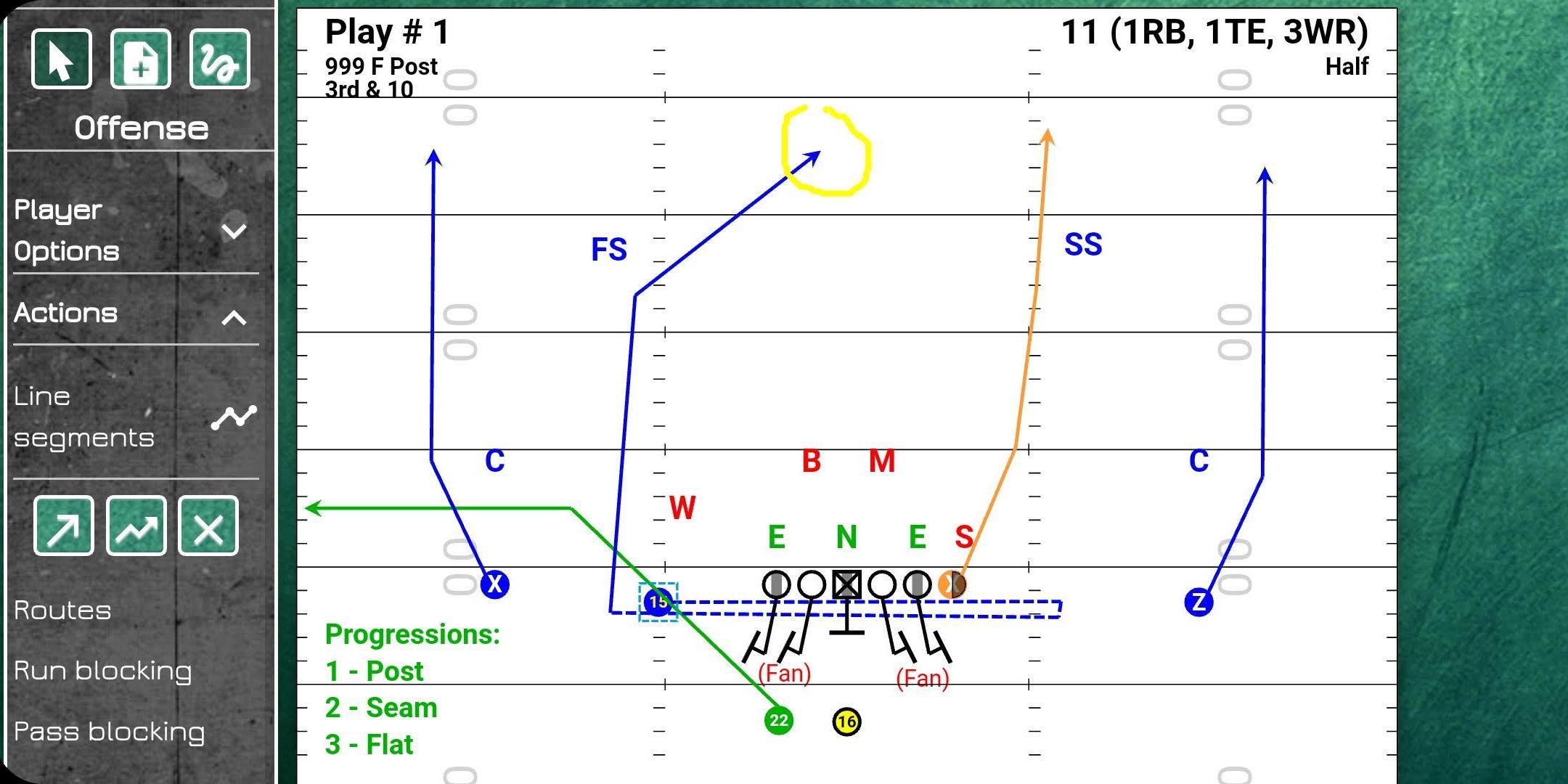 - Draw your own routes, blocks, coverages, blitzes, and stunts on play cards