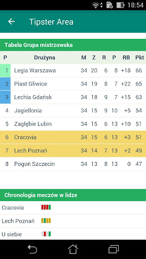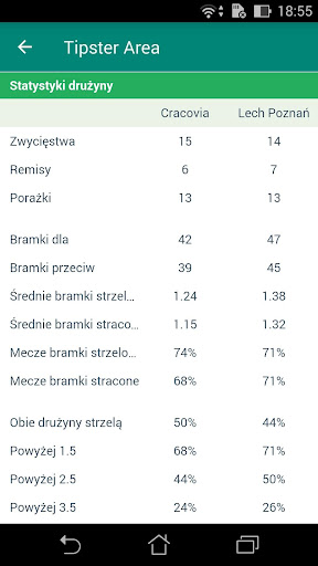 - Ogólne statystyki oraz tylko dla gier w którym drużyna jest gospodarzem i tylko na mecze wyjazdowe