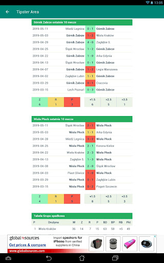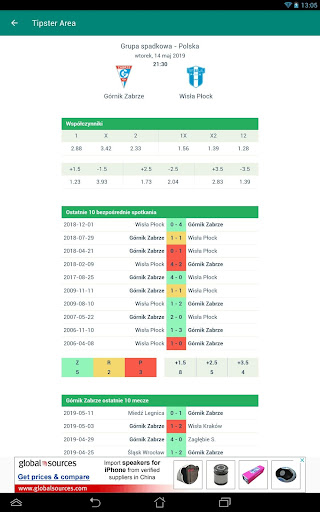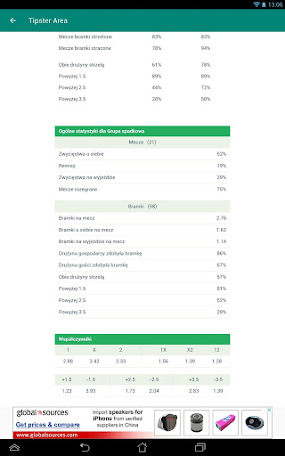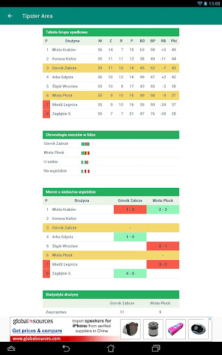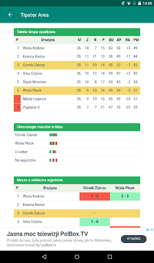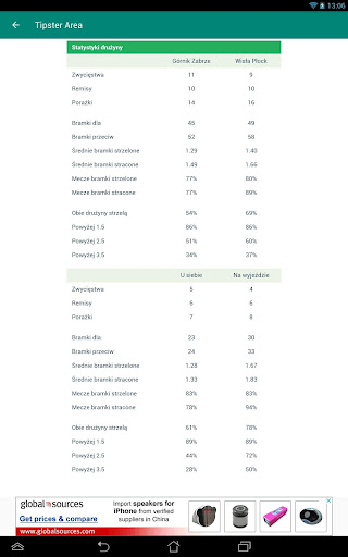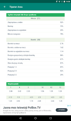 Tipster Area to aplikacja do statystyk piłkarskich, która pokazuje mecze według daty i pokazuje wiele szczegółowych statystyk oraz ekran do porównania wskaźników: