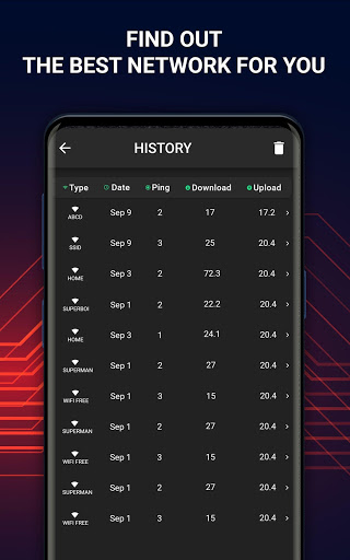 History of Wifi Test For Android is saved accurately helps you find out which internet service provider you are most satisfied. Wifi Tester app also check the wireless signal strength, network type, supplier, etc.