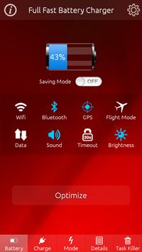 When you connect your charger to your phone, Full Fast Battery Charger will detect it and limit the power consumption of your phone. Then your battery doesn’t withdraw much power during the charging time and therefore it can charge very fast.