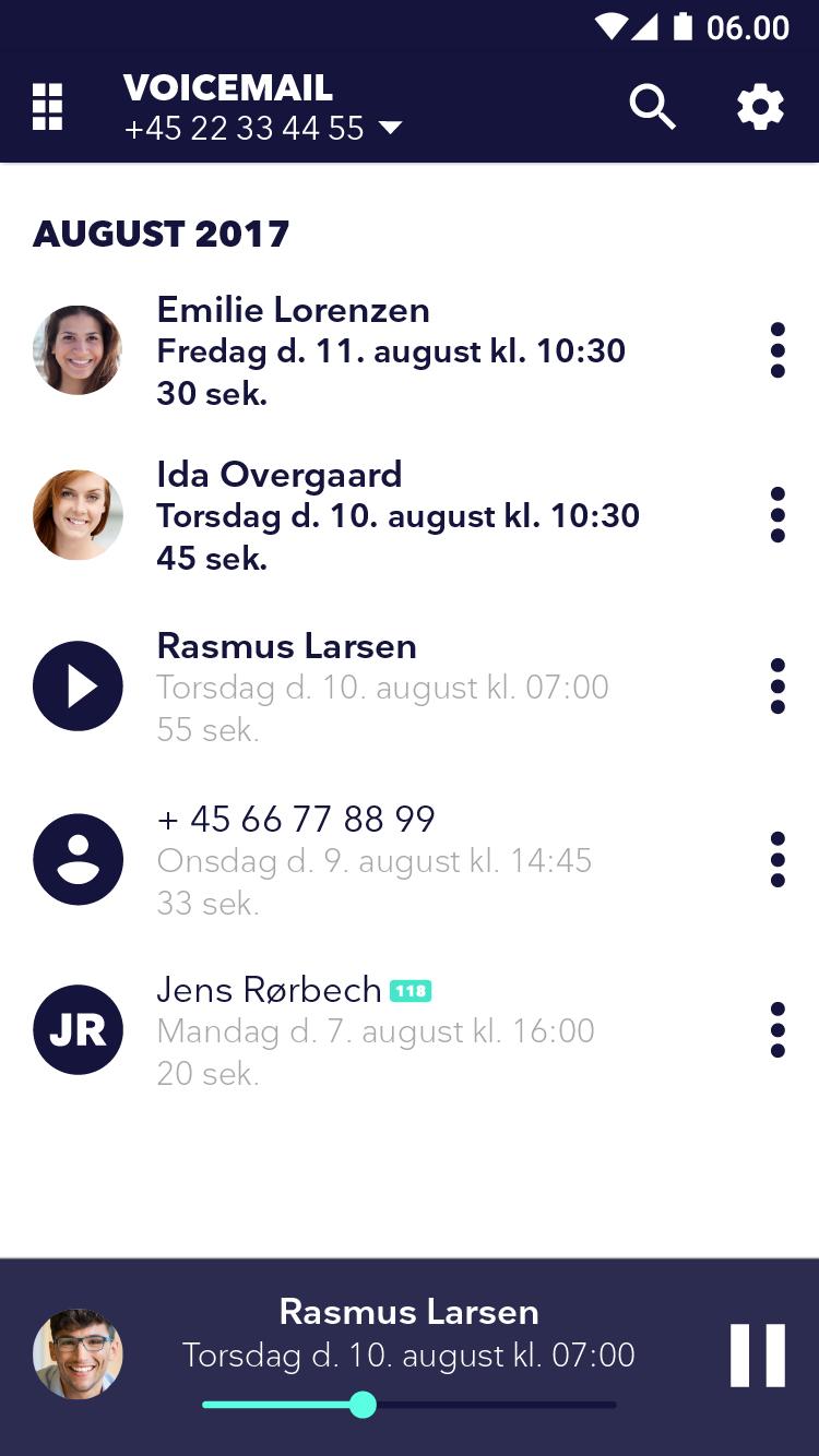 Fullrate Voicemail: By listening to your voicemail messages directly from the app you don’t need to call your traditional mobil answer again. With the Fullrate app it’s easy and quick to listen to your messages, rewind and delete the messages. Furthermore, you can record your personal welcome message or send a message as a sound file via mail.