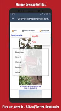 Downloaded files are saved in folder: SDCard/Twitter-Downloader!