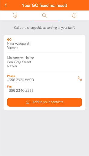 Contacting people or businesses is easy with the GO Directory App. This telephone directory app offers a quick and easy way to find mobile and fixed line numbers in Malta. Search by keying in details, such as name, surname or company name. You can also trace who that missed call came from by simply inputting the number (applicable to GO fixed lines). The GO Directory App is a free telephone directory application from GO plc.