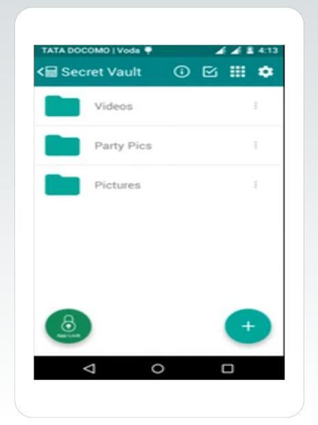 - It will open the Safe Vault where you can store all your private photos, videos, files.
