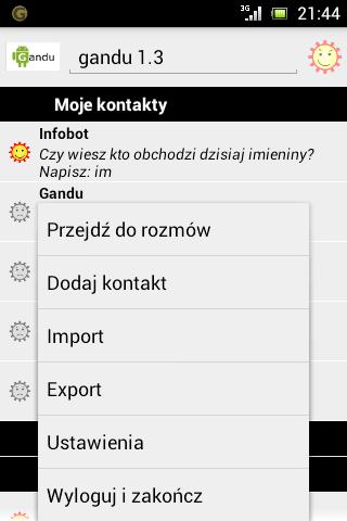 Gandu to darmowy komunikator na platformę Android 1.5 * , który pozwala na komunikację użytkowników Gadu-Gadu.