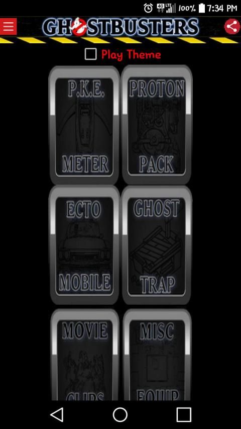 Play sounds from Ecto-1, P.K.E. Meter, Proton Pack, Slime Blower, Ghost trap and more!