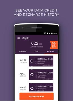 After you download and register with Gigato, all the apps that partner with us are able to refund you for the data consumed on their apps with unrestricted mobile recharge credit on 2G/3G/4G.