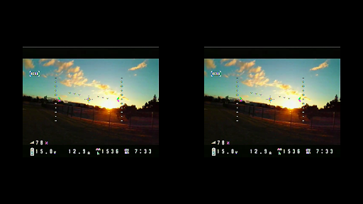 - FPV Goggle mode (stereoscopic, 2 pictures, side by side)