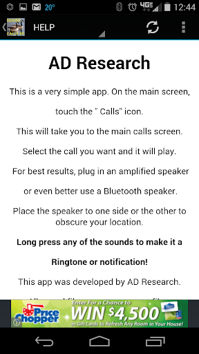 This app produces 9 tried and true Canada Goose Calls for the avid hunter. Comes with all the sounds you should need for a successful hunt. Just plug in your amplified speaker and happy hunting! For even better results...use a Bluetooth speaker placed away from you to one side or the other. If there are geese in the area it will draw their attention away from you.