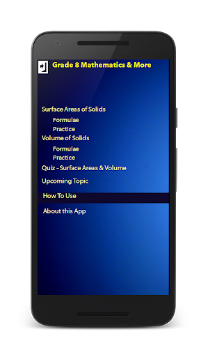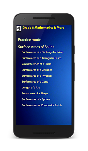 • Opublikowane tematy: Obecnie wyświetlane są powierzchnia stałych i objętości stałych stałych. Obejmują one prostokątny pryzmat, trójkątny pryzmat, cylinder, piramida, stożek, obwód koła, obszaru sektora, długość łuku, sfery i obszarów kompozytowych. Problemy słowo o geometrii są wszechstronne.