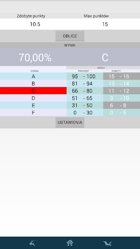 Opcja USTAWIENIA pozwala wybrać rodzaj skali punktów oraz indywidualnie dostosować skalę procentową.