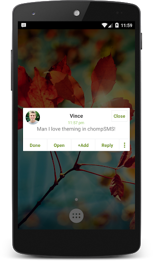 This is the Greeny theme add-on to the chompSMS application. Once installed, access the theme in chompSMS > Settings > Theme It! Note: requires at least chompSMS version 6.34
