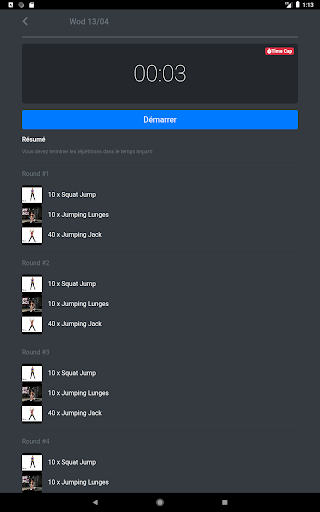 -> Un minuteur vous indique l'avancement du workout