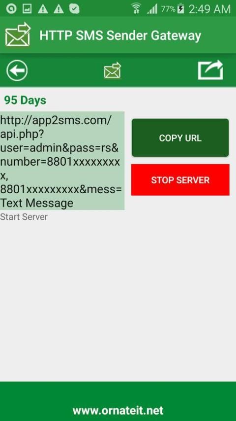 For Android Smart Mobile, ORNATE it HTTP SMS Sender Gateway has prepared an apps. With the help of it, Android Mobile is converted into a SMS Gateway. Resulting into which, with the help of HTTP request SMS can be Send smoothly.
