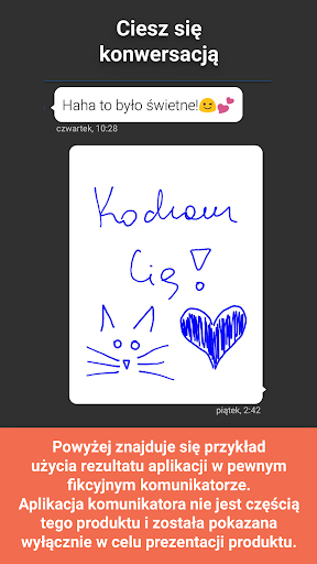 • Używaj Ręcznie Pisane Wiadomości jako niezależną aplikację do wysyłania rezultatu do jakiejkolwiek aplikacji typu messenger lub innej.