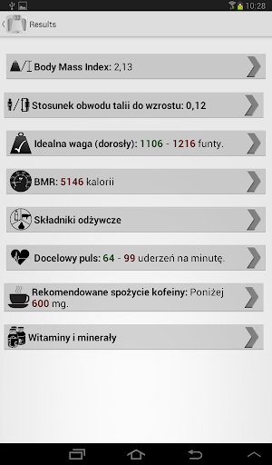 Health calc pomoże Ci pilnować wagi. Oblicza BMI, stosunek obwodu talii do wzrostu i tempo przemiany materii. Aplikacja sugeruje idealny obwód talii i zaleca dzienne spożycie kalorii w celu utrzymania