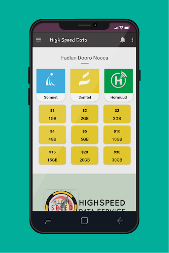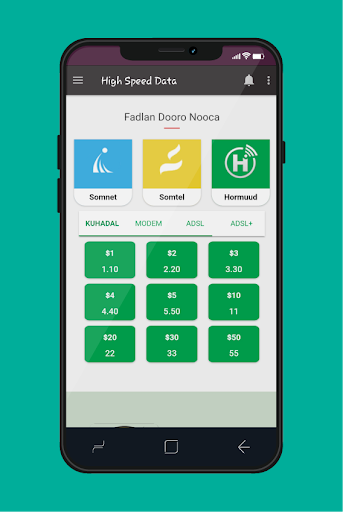 Waxaad ka iibsan kartaan xirmooyinka Somnet . Hada kadib uma baahnid in aad cid la hadashid ama qarash telefan ku bixisid si laguugu shubo xirmo SomNet hadii aad isticmaashaan High Speed Data. Sidoo kale ka waxaad ka heli doontaa Adeegyada EVC Plus, ANFAC iyo Artimet