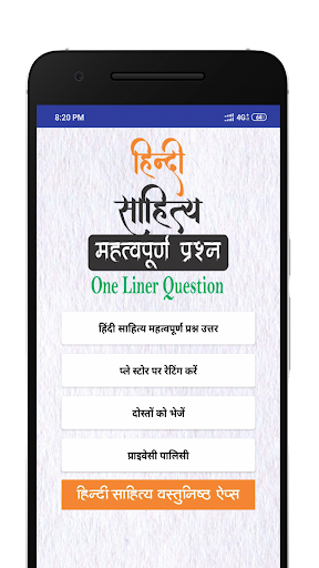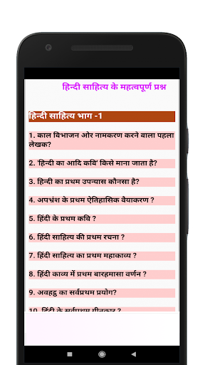 Aplikacja Pytania Hindi Sahitya jest przeznaczona dla konkurencyjnego egzaminu, który Net Hindi, TGT Hindi, PGT Hindi Ważne pytania dotyczące egzaminu.W tej aplikacji wybrano pytania i odpowiedzi hindi Sahitya są dostarczane w interaktywny sposóbHindi Sahitya Aadikal