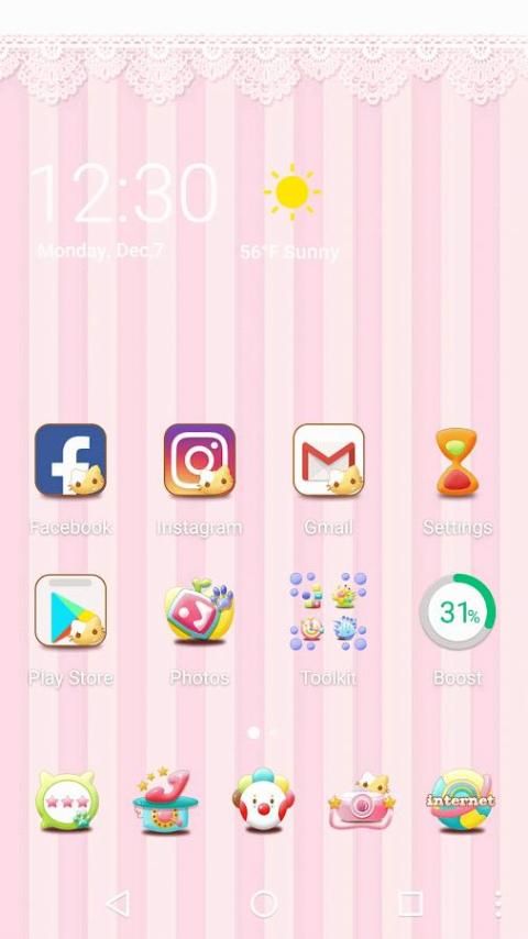 To apply the cartoon theme for girl, please install our Air Launcher first. Apply the Cartoon Theme - Cute Clown, to make your phone faster, orderly and cool & cute. The original app icons, clock and weather theme of your phone will be replaced by the Cartoon Theme - Cute Clown. We have designed many customized themes for popular apps, these include camera apps, social apps, entertainment apps, useful tools and messenger apps. There are thousands of themes waiting for you in our launcher, namely pink theme, black theme, game theme, cartoon theme, anime themes, girly wallpaper theme and many more. All of our beautiful themes are free and available at Google Play Store. Download and apply Cartoon Theme - Cute Clown now!